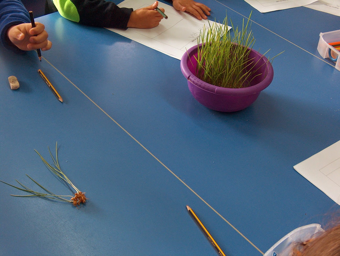 Um pequeno grupo foi experimentar fazer tintas com "pigmentos",como fazia o Pintor Giotto. Nós fizemos com a couve roxa.