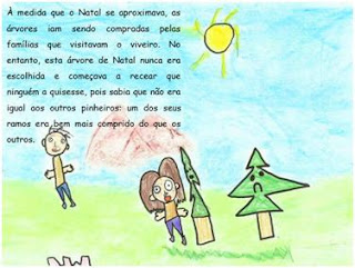 Inspirados na história " Uma árvore de Natal muito especial" de Ana Oom, o Miguel, a Leonor, a Alice, a Carolina, o Gonçalo e a Diana recriaram a história , ilustraram e apresentaram-na ao grupo em Power Point. Aqui vai a história...